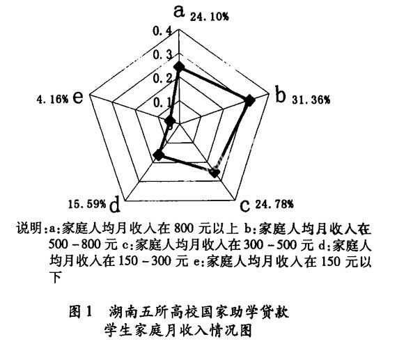 所以,即便现在就业形势比较严峻,但学生的还款压力仍然较小。一是因为现在的大学生即使不能找到固定工作,但现实中未能就业的大学生会选择做临时工,其工资也多在800元以上,除去基本生活费用也能节省下一些。二是因为据我们项目组的调查数据显示:家庭人均月收入在150元以下的贷款学生比例比较小。见图1。