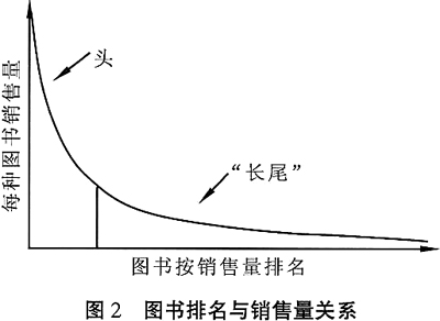 根据以上图书销售模式,如果将图书的销售量作为纵坐标,图书的销售排名作为横坐标, 我们就会得到图1所示这个左边重而短,右边长而低的销售曲线。