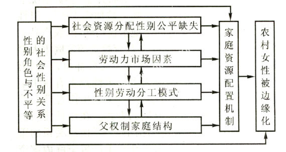 通过对西部农村家庭内部资源分配中女性被“边缘化”问题的现状考察,不难看出,西部农村女性被“边缘化”,作为一个普遍的社会现象,它的产生绝不是一个简单的偶然性因素所导致,而是长期以来西部地区自然生态环境变迁、社会政治经济与文化长期发展演变的结果,特别是当代中国在社会转型期中,西部农村普遍存在着父权制家庭结构、传统的“男主外,女主内”性别劳动分工模式、市场为导向的家庭资源配置机制、不平等的社会性别关系以及社会资源分配中性别公平性缺失等诸多因素。