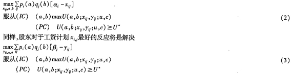 ij下工作,仅当他能实现他的保留效用水平U,U为经营管理者不接受合同时得到的最大期望效用,它由经营管理者面临的其它市场机会决定。