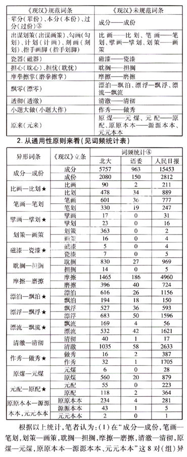 正如《一表》的规范原则所说:现代汉语中异形词的出现有一个历史发展过程,涉及形、音、义等多个方面。整理异形词必须全面考虑、统筹兼顾,既要立足于现实,又要尊重历史;既充分注意语言的系统性,又承认发展演变中的特殊情况。