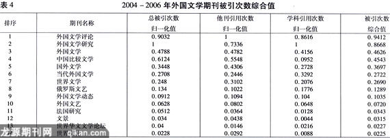 4 外国文学期刊影响因子综合分析
